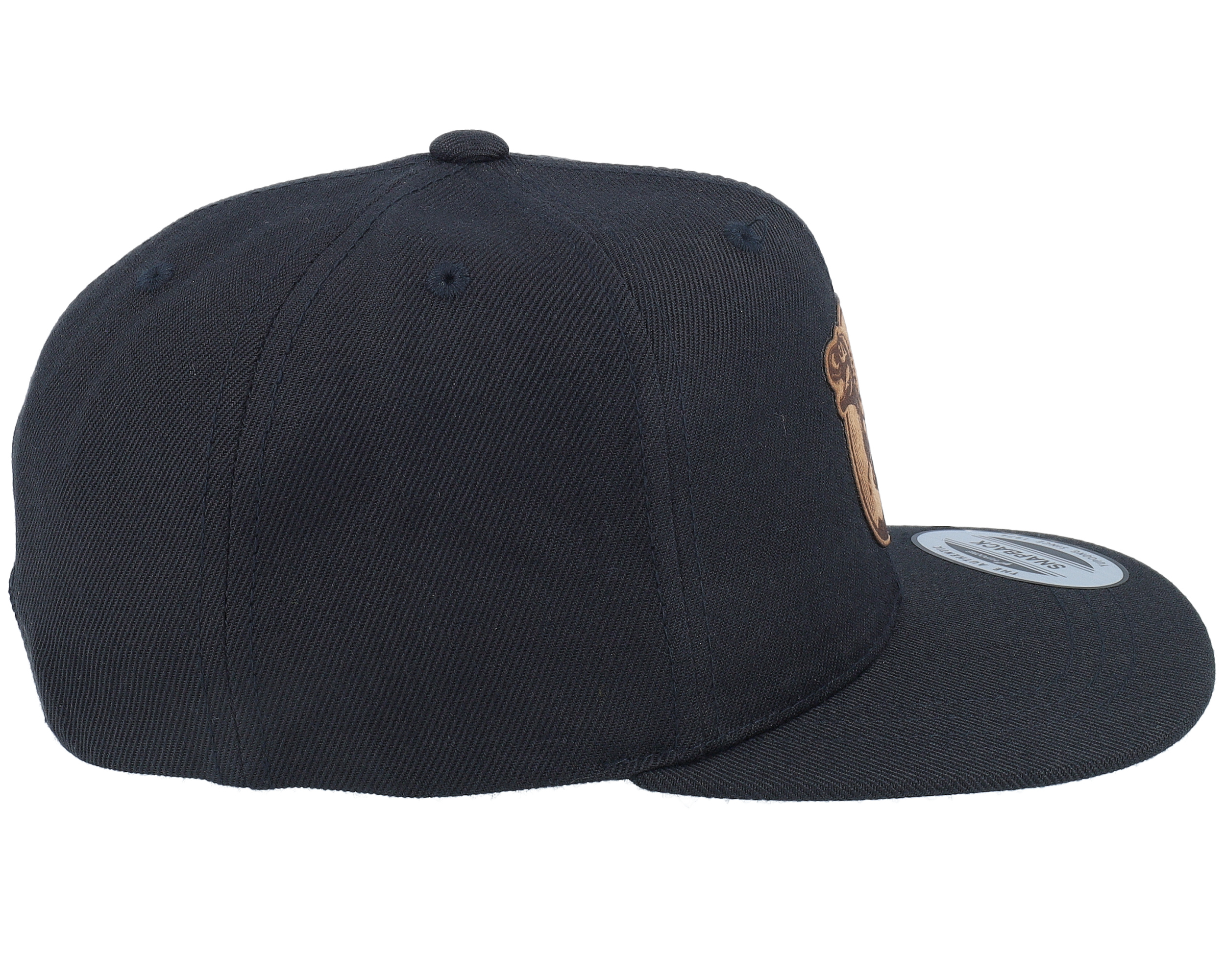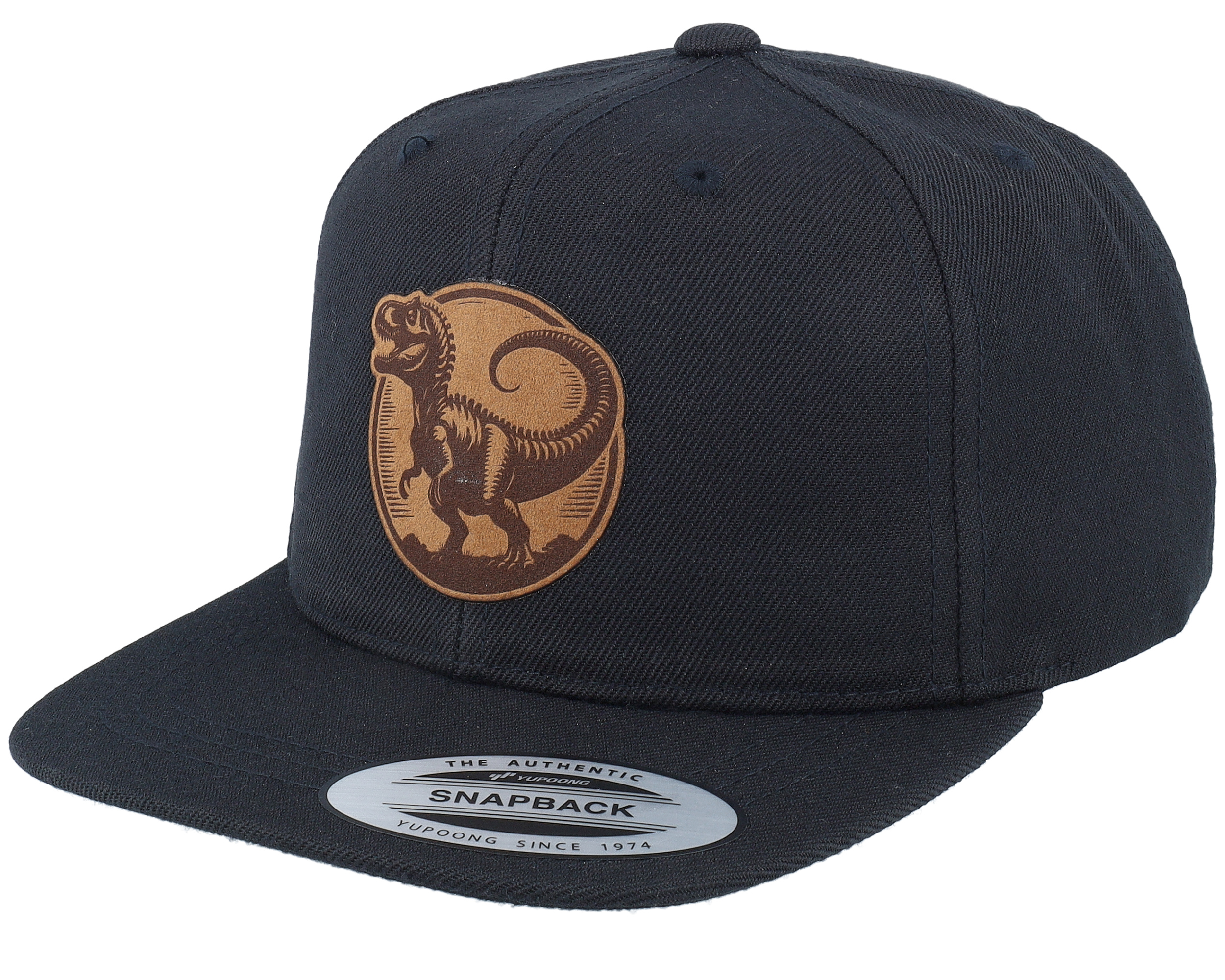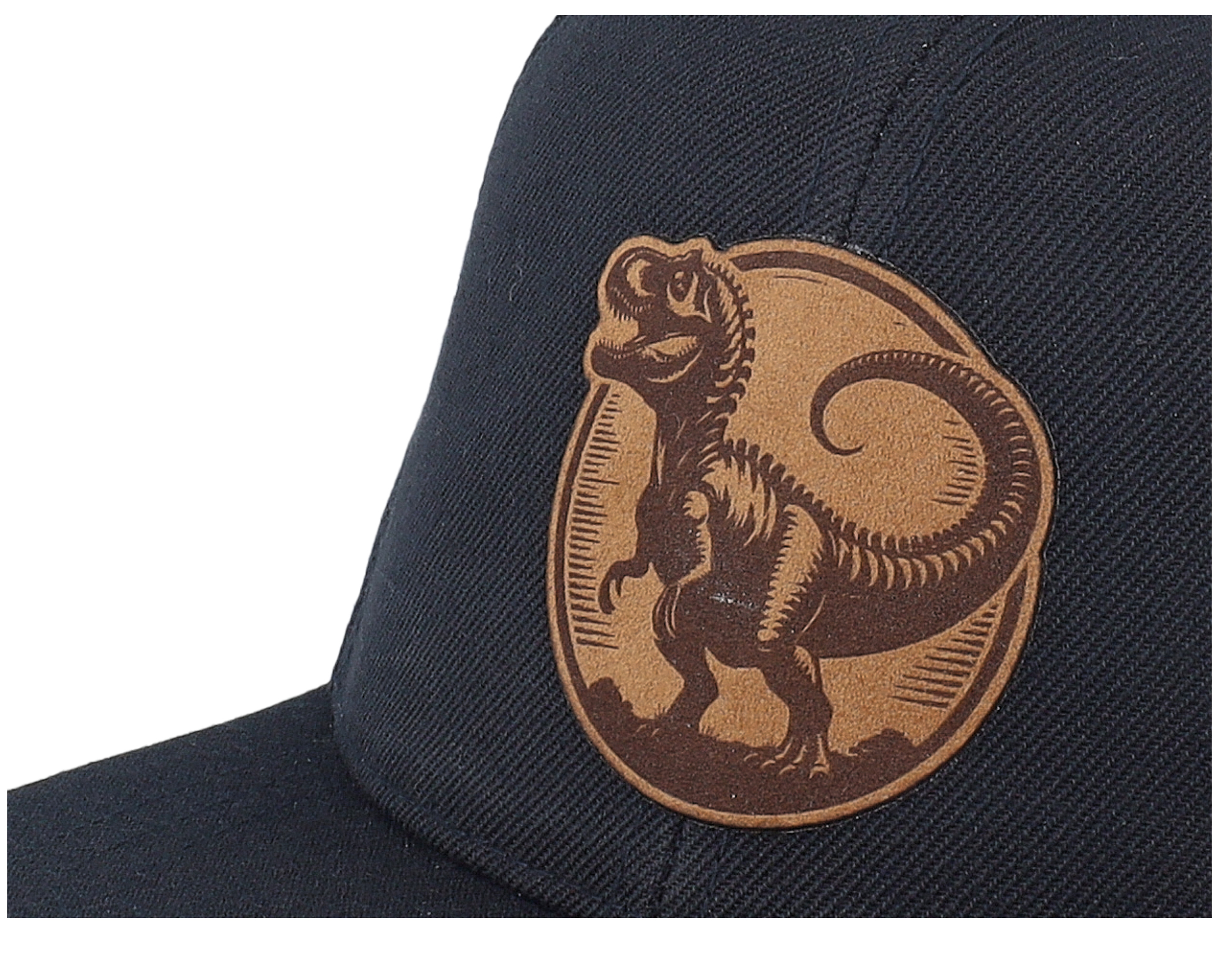 Kids T-rex Dino Brown Round Patch Black Snapback